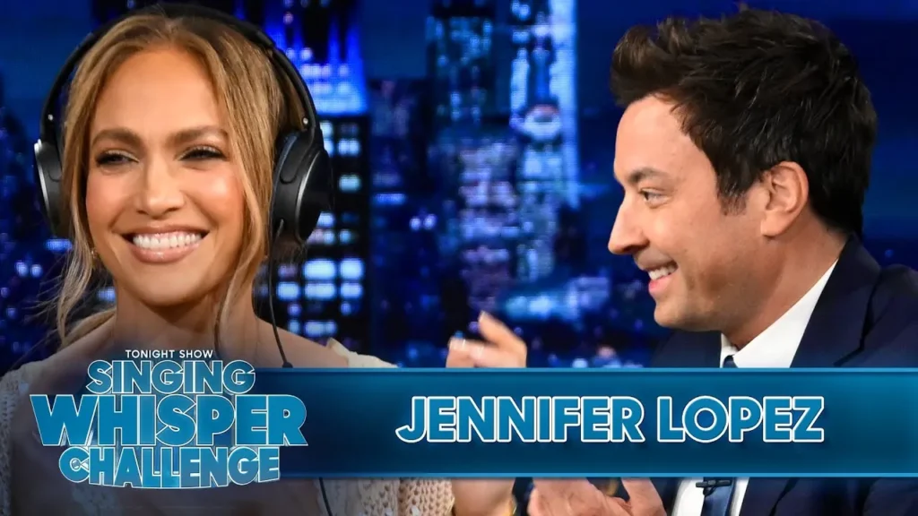 Jennifer Lopez brought her characteristic enthusiasm and charm to The Tonight Show Starring Jimmy Fallon, where she joined Jimmy in the amusing “Singing Whisper Challenge.” The performance immediately became one of the night’s highlights, demonstrating J.Lo’s fun side and great musical talent – even when she couldn’t hear a note.